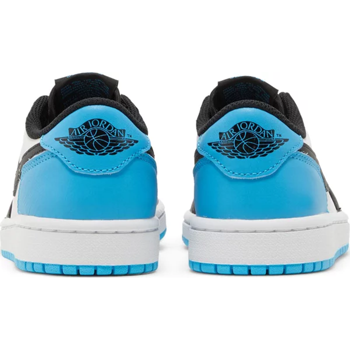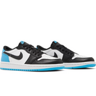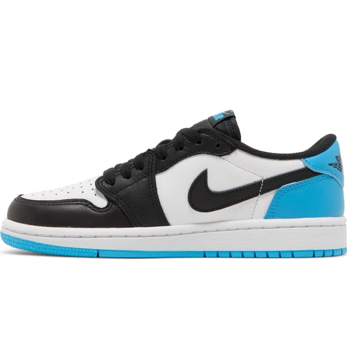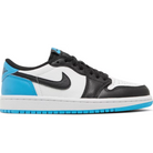 The Nike Air Jordan 1 Low 'Powder Blue' is a stylish and versatile shoe that combines classic design with modern comfort. The shoe features a sleek black leather upper around the toe area and the iconic Nike swoosh, while the heel and sole are made from high-quality powder blue leather. Underlayed with white leather, the shoe is further accentuated with contrasting colors and textures, creating a unique and eye-catching look. With a comfortable and supportive sole, the Nike Air Jordan 1 Low 'Powder Blue' is perfect for everyday wear, making it a must-have addition to any sneaker collection. Whether you're hitting the streets or the court, these shoes are sure to turn heads and make a statement.
