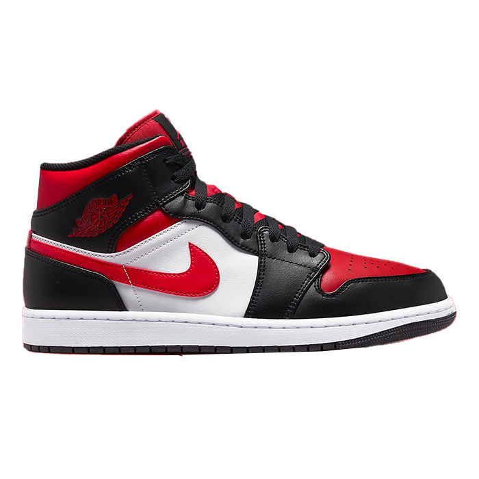 The Nike Air Jordan 1 Mid 'Bred' is a classic and timeless sneaker that combines style and performance. The shoe features a black and red colorway, with a durable leather upper and a comfortable midsole for cushioning and support. The iconic Jumpman logo can be found on the tongue and the iconic wings logo can be found embossed in red on the ankle , and the shoe's design pays homage to Michael Jordan's legendary career. Whether you're looking for a shoe to wear on the court or out on the town, the Nike Air Jordan 1 Mid 'Bred' delivers both style and function.
