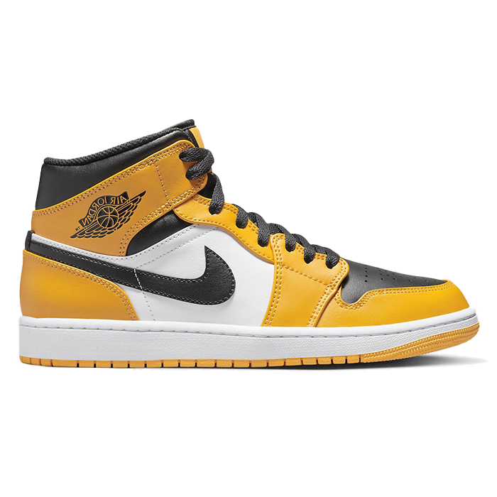 The Nike Air Jordan 1 Mid 'Taxi' is a stylish and versatile shoe that seamlessly blends comfort and fashion. With a vibrant yellow colorway that dominates the upper, this shoe catches the eye with contrasting black on the toe box, swoosh, and wings logo. The white accents add a touch of sophistication to the design, making it an ideal shoe for any casual or sporty occasion. The yellow sole provides excellent traction and support, ensuring a comfortable stride on any surface. Whether you're hitting the basketball court or simply running errands around town, the Nike Air Jordan 1 Mid 'Taxi' is the perfect shoe to keep you looking and feeling your best.