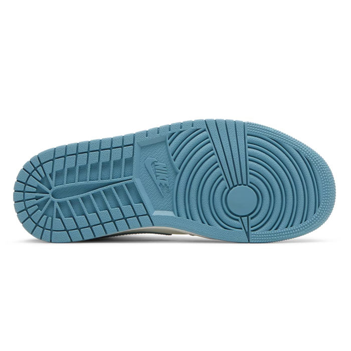 The Nike Air Jordan 1 Mid 'UNC' is a stylish and versatile sneaker that pays tribute to the University of North Carolina's basketball team, Michael Jordan's alma mater. This mid-top shoe features a white leather upper with light blue accents on the heel, Swoosh, and collar, reminiscent of the Tar Heels' team colors. The iconic wings logo can be found on the side of the shoe. The shoe also comes with a rubber outsole for added traction and durability. Whether you're hitting the court or going out for a casual day, the Nike Air Jordan 1 Mid 'UNC' is a great addition to your shoe collection.