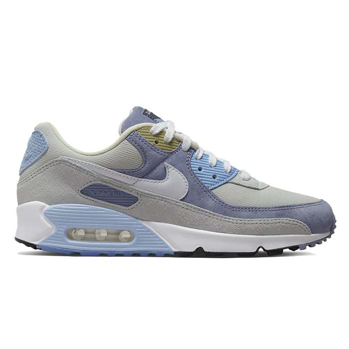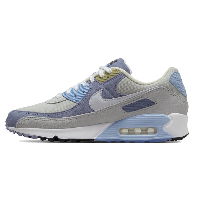 The Nike Air Max 90 NRG 'Ashen Slate' is the latest addition to Nike's iconic Air Max line-up. This sneaker boasts a sleek and stylish ashen slate and light bone colored upper, constructed from a combination of leather, suede, and mesh. The unique graphics on the tongues add a touch of flair to the already stunning design. The shoe is built for both style and comfort, with a white midsole providing cushioning and support. The colored outsole also adds a pop of color to the shoe's overall look. Whether you're hitting the streets or just looking for a stylish sneaker to add to your collection, the Nike Air Max 90 NRG 'Ashen Slate' is the perfect choice.