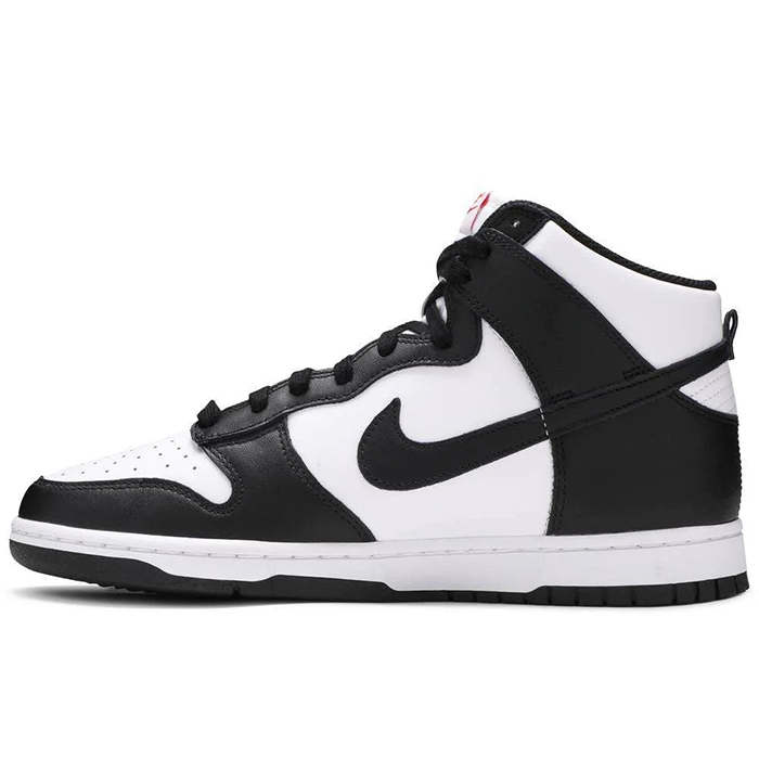 The Nike Dunk High 'Panda' shoe is a stylish and modern footwear option that is perfect for anyone looking for a sleek and versatile design. Made with high-quality black and white leather, these shoes feature a classic Panda colorway that is sure to turn heads. With a comfortable fit and a durable construction, these shoes are ideal for everyday wear or for making a statement on the basketball court. Whether you're a seasoned athlete or simply looking for a fashionable and functional shoe to add to your wardrobe, the Nike Dunk High 'Panda' shoe is an excellent choice.