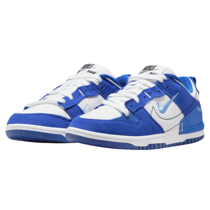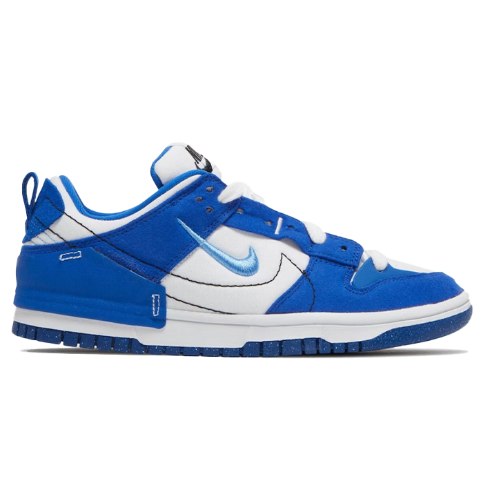 Introducing the Nike Dunk Low Disrupt 2 'Royal Blue', a sleek and stylish sneaker that's perfect for the fashion-conscious sneakerhead. This shoe features a blue suede upper that's both durable and comfortable, while the white canvas panels add a touch of contrast and texture. The double swoosh with blue accents is a nod to the iconic Nike branding, while also giving the shoe a unique and eye-catching design. Whether you're hitting the streets or just looking for a stylish addition to your sneaker collection, the Nike Dunk Low Disrupt 2 'Royal Blue' is sure to impress.