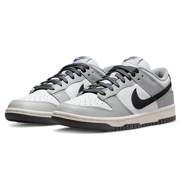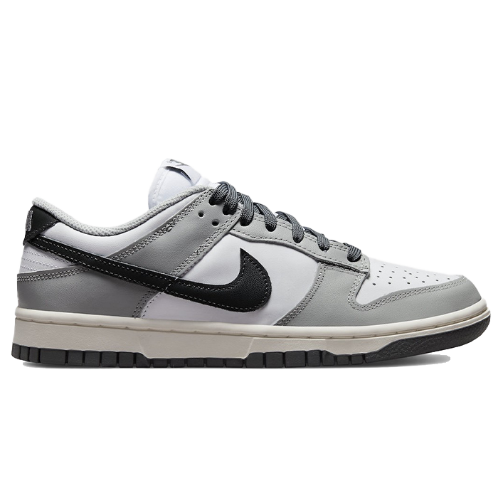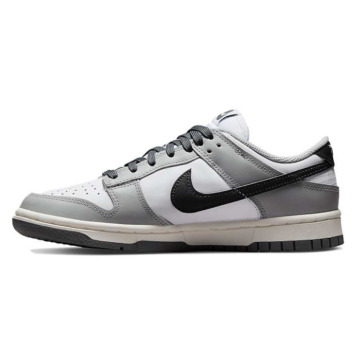 The Nike Dunk Low 'Light Smoke Grey' shoe is a stylish and versatile addition to any sneaker collection. The shoe features a combination of grey and white leather, giving it a clean and sophisticated look. The black swoosh and heel tab add a subtle contrast, while the aged, vintage midsole gives the shoe a worn-in and classic feel. The all-leather construction ensures durability and comfort, making these shoes perfect for daily wear. Whether you're hitting the gym or running errands, the Nike Dunk Low 'Light Smoke Grey' shoe is a great choice for any occasion.