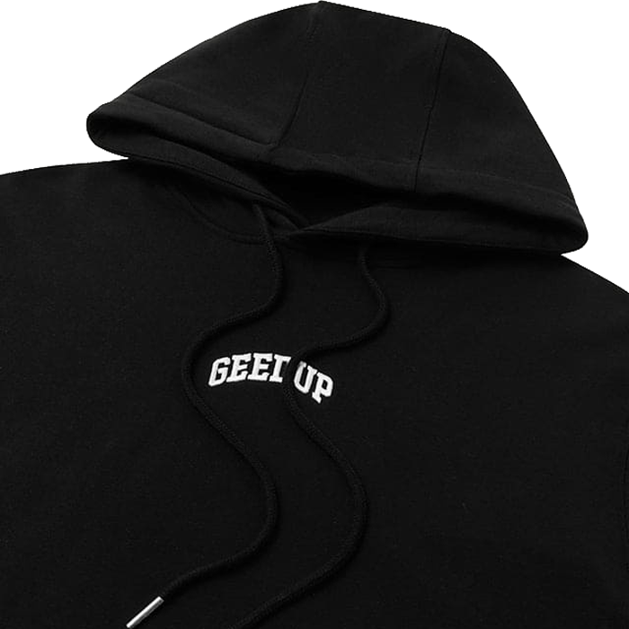 The GEEDUP Micro Team Logo Hoodie is all about being minimal with heavyweight comfort. Designed in a solid black colorway, it features a crisp GEEDUP embroidered logo at the chest for a timeless streetwear look. With a soft fleece interior, kangaroo pocket, and ribbed cuffs, this hoodie delivers everyday durability with effortless style.