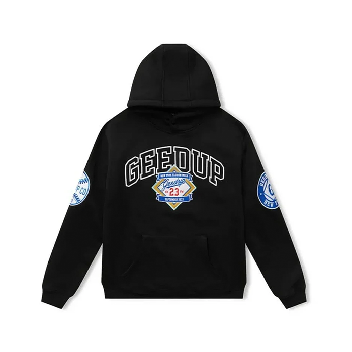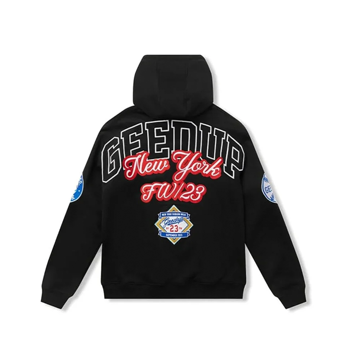 Get ready to turn heads with the GEEDUP. x NYFW Hoodie! Featuring premium embroidery, this exclusive piece from the New York Fashion Week will elevate your style game. With the signature GEEDUP. logo, this hoodie is the ultimate statement piece!