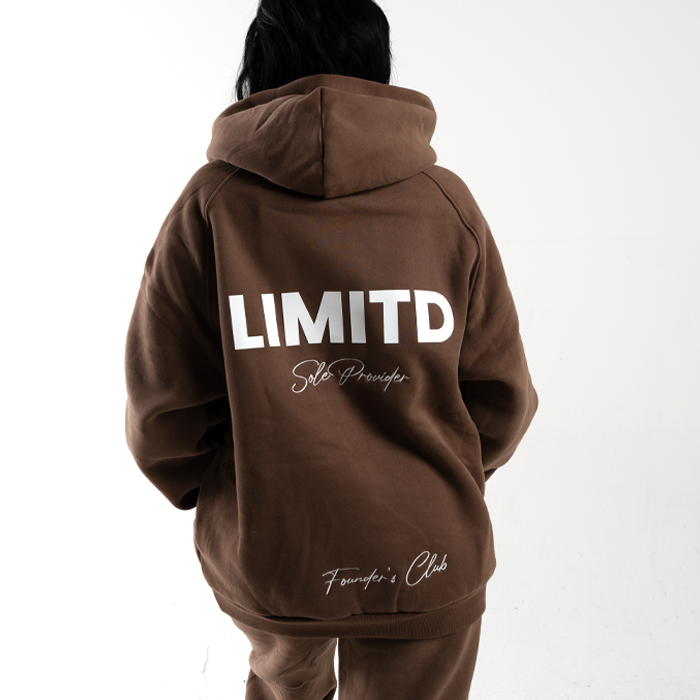 Get cozy and stylish with the LIMITD Founder's Club Hoodie in 'Cacao'. Made with high-quality 350gsm premium fleece, this oversized hoodie features raglan style sleeves for a comfortable fit. The 3D rubber print and embroidered details add a unique touch to this 50% cotton, 50% polyester blend. Stay warm and stand out in style.