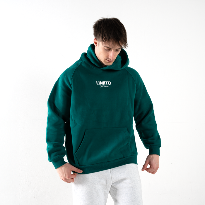 Get cozy and stylish with the LIMITD Founder's Club Hoodie in 'Forest Green'. Made with high-quality 350gsm premium fleece, this oversized hoodie features raglan style sleeves for a comfortable fit. The 3D rubber print and embroidered details add a unique touch to this 50% cotton, 50% polyester blend. Stay warm and stand out in style.
