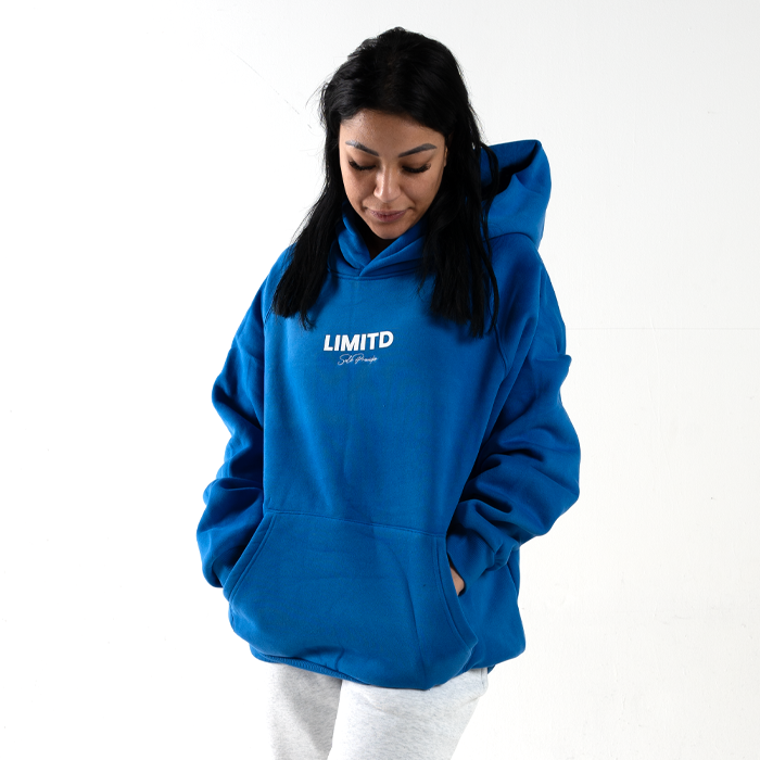 Get cozy and stylish with the LIMITD Founder's Club Hoodie in 'Royal Blue'. Made with high-quality 350gsm premium fleece, this oversized hoodie features raglan style sleeves for a comfortable fit. The 3D rubber print and embroidered details add a unique touch to this 50% cotton, 50% polyester blend. Stay warm and stand out in style.