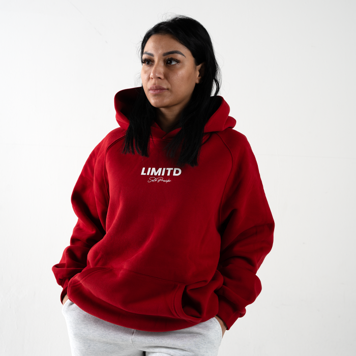 Get cozy and stylish with the LIMITD Founder's Club Hoodie in 'Scarlet Red'. Made with high-quality 350gsm premium fleece, this oversized hoodie features raglan style sleeves for a comfortable fit. The 3D rubber print and embroidered details add a unique touch to this 50% cotton, 50% polyester blend. Stay warm and stand out in style.