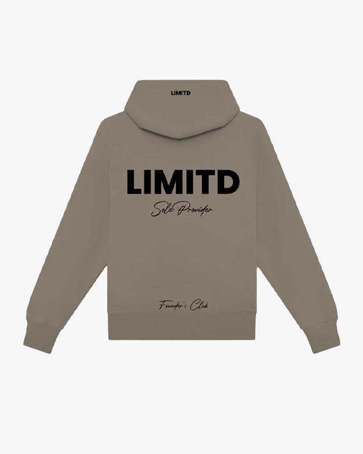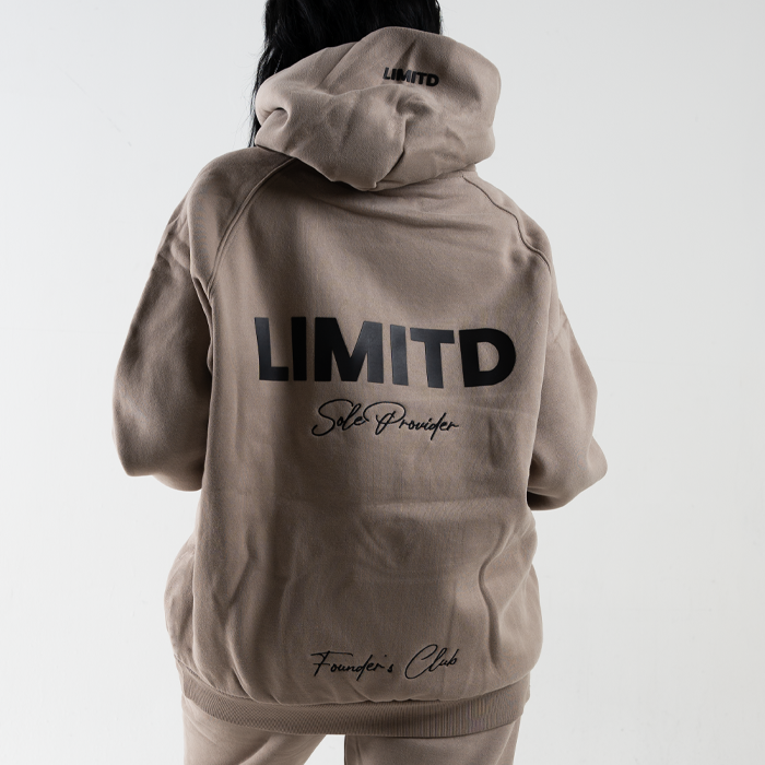 Get cozy and stylish with the LIMITD Founder's Club Hoodie in 'Taupe'. Made with high-quality 350gsm premium fleece, this oversized hoodie features raglan style sleeves for a comfortable fit. The 3D rubber print and embroidered details add a unique touch to this 50% cotton, 50% polyester blend. Stay warm and stand out in style.