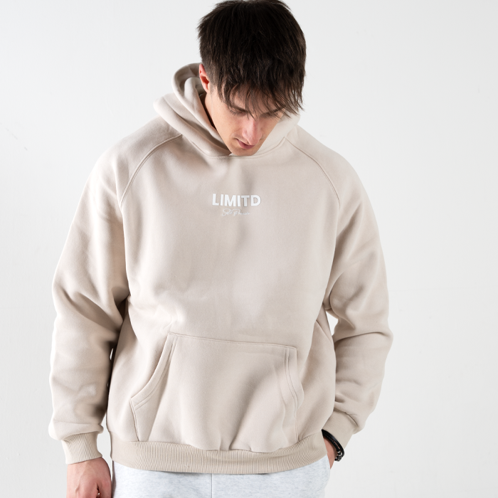 Get cozy and stylish with the LIMITD Founder's Club Hoodie in 'Wheat'. Made with high-quality 350gsm premium fleece, this oversized hoodie features raglan style sleeves for a comfortable fit. The 3D rubber print and embroidered details add a unique touch to this 50% cotton, 50% polyester blend. Stay warm and stand out in style.