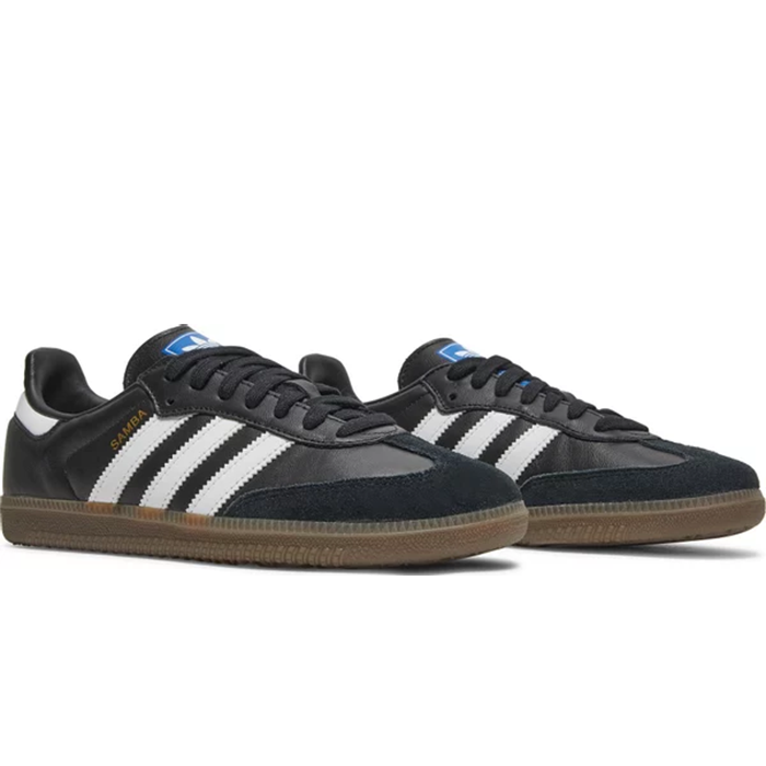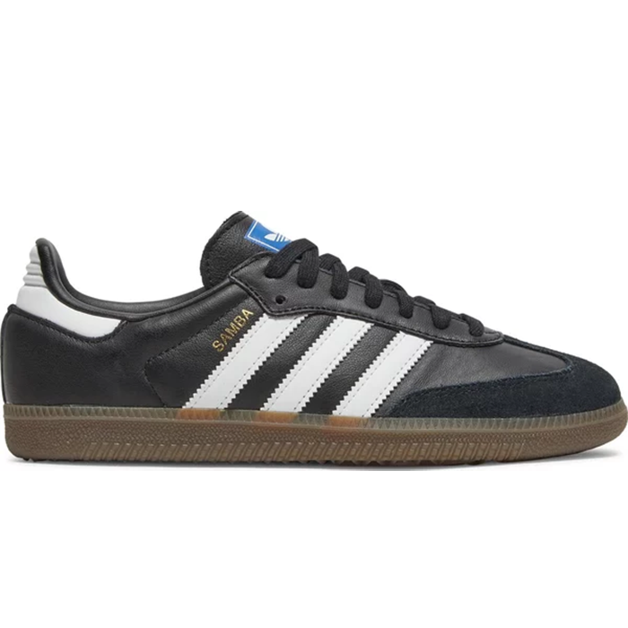 The adidas Samba OG originally came onto the scene in 1950 to protect soccer players’ feet from the icy ground during winter. Returning with classic distinction, this 'Black Gum' iteration's full-grain leather upper is upgraded with tonal suede around the toe and on the heel. Serrated Three-Stripes, a metallic foil logo and a Bluebird tongue label lend a vintage spirit. The rubber outsole rides underfoot, gripping with diverse tread.