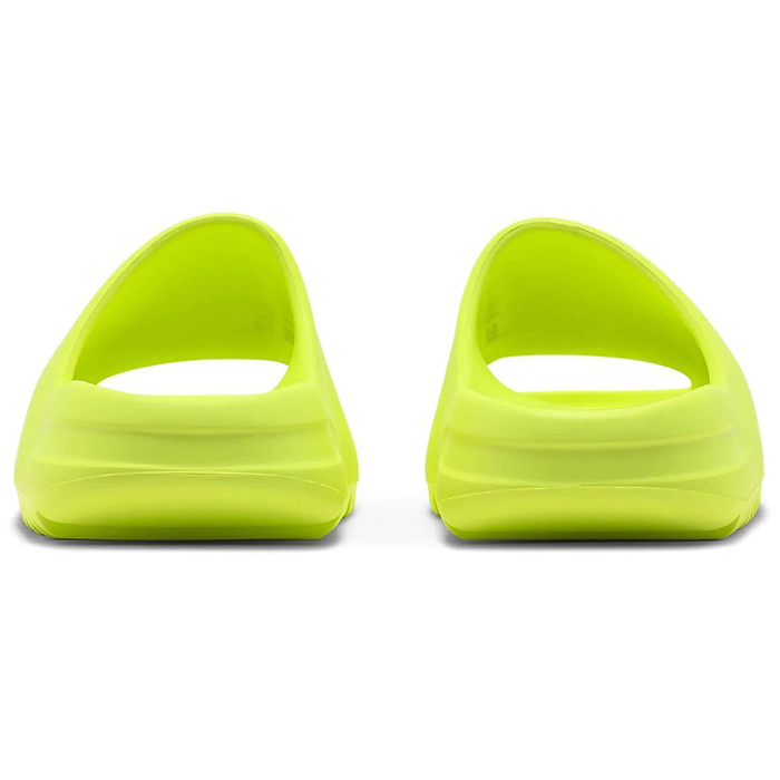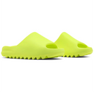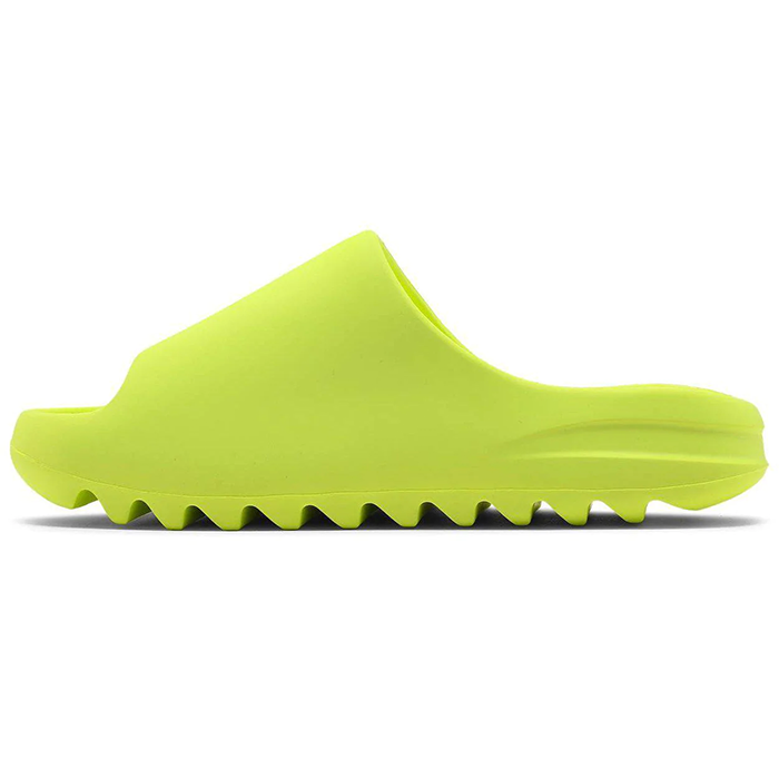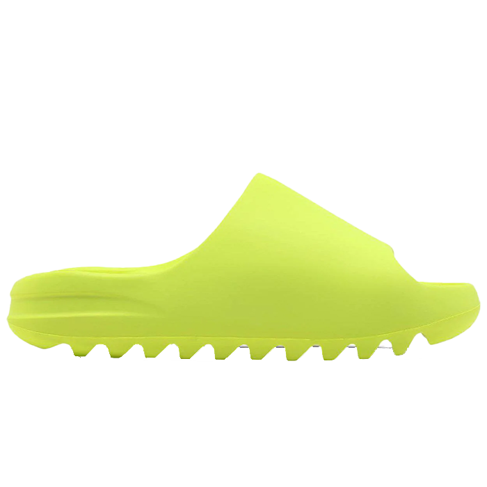 Introducing the Adidas Yeezy Slides in the vibrant 'Glow Green' colorway, designed by Kanye West. These slides are the perfect blend of comfort and style, made with a lightweight EVA foam construction that cushions your feet with every step. The signature Adidas three-stripe branding is featured on the top of the slide, along with a Yeezy logo on the side for added flair. The 'Glow Green' colorway adds a pop of neon to your footwear collection, making these slides a bold and eye-catching addition to any outfit. Whether you're running errands or relaxing at home, these Yeezy slides offer comfort and style in equal measure.