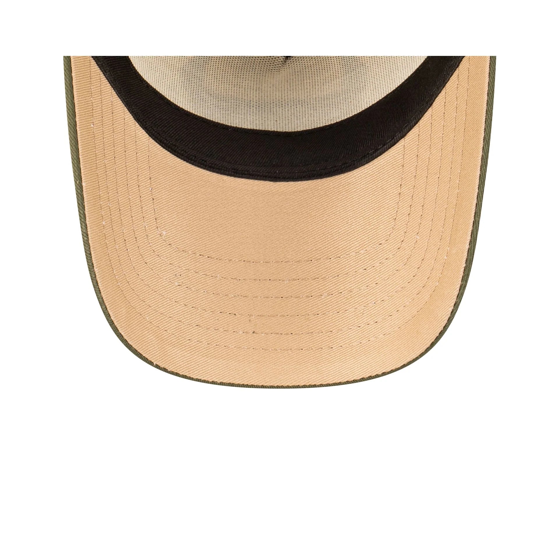 The Chicago Bulls Winecork Olive 9FORTY A-Frame Snapback features a raised Chicago Bulls Logo on the front, in Olive with Camel Undervisor. Additional features include a New Era Flag Logo on the left side.