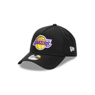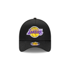 The Los Angeles Lakers NBA Essentials Black OTC 9FORTY A-Frame Snapback features an embroidered Lakers logo on the front panels of a pitched structured crown with a snapback enclosure at the back.