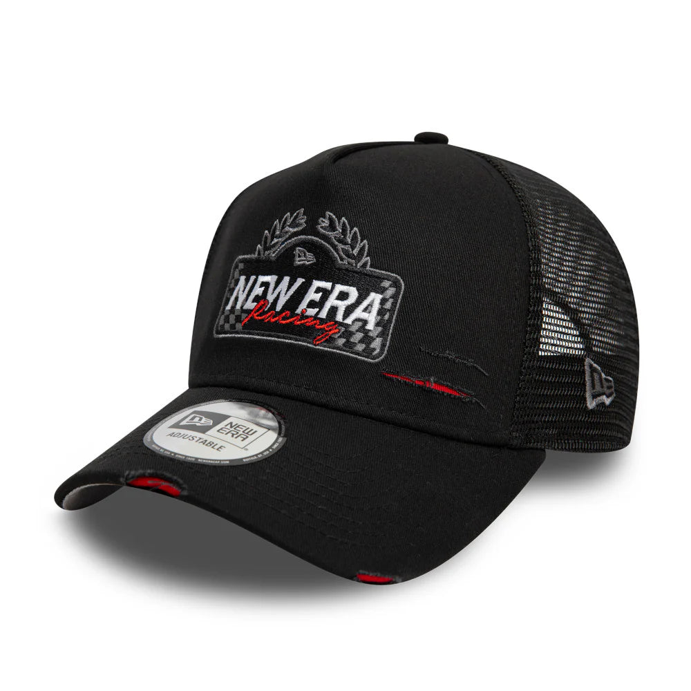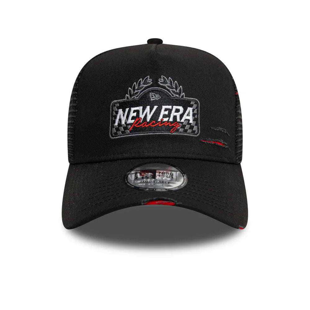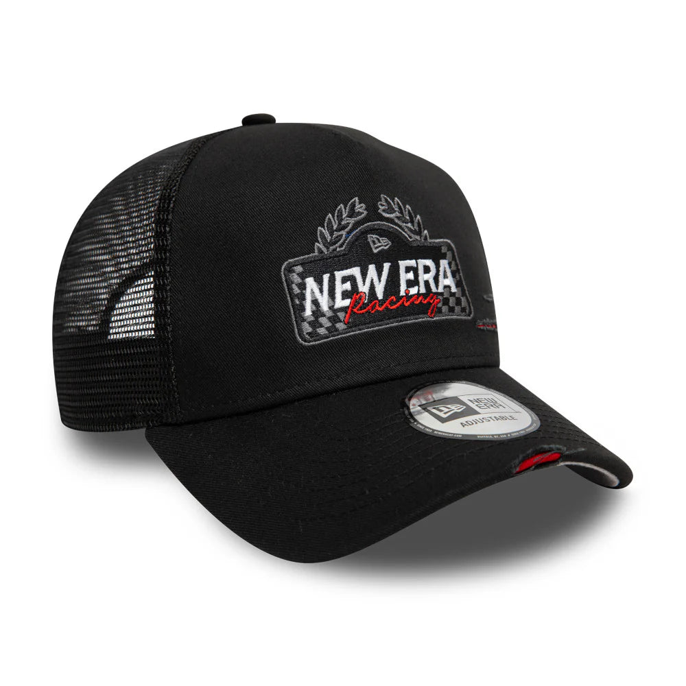 Elevate your racing style with the New Era 9Forty A-Frame Trucker Motosport Racing Black cap. Its adjustable design and durable material make it perfect for any track or day out. Stay cool and fast with this sleek and stylish accessory.