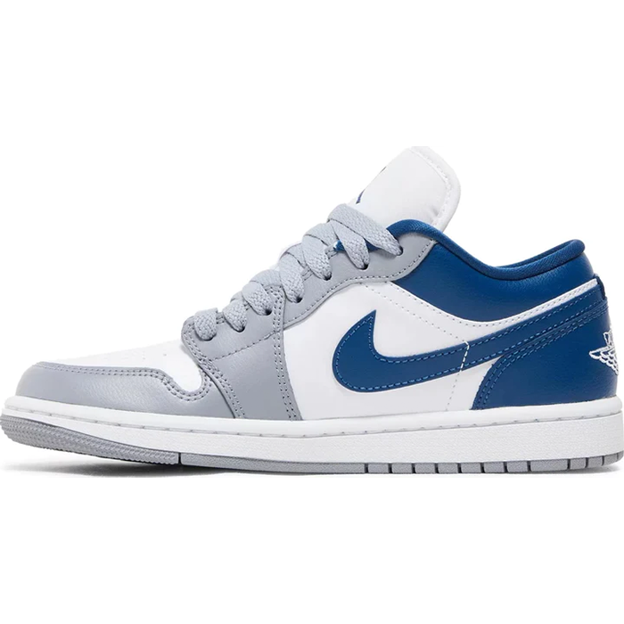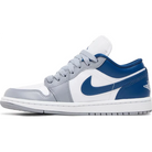 The Nike Air Jordan 1 Low 'Blue Stealth' sneakers for women are a stunning blend of classic style and modern design. The shoes boast a sleek blue colorway with hits of white and grey accents for a timeless yet trendy look. The upper is crafted from premium leather, ensuring durability and long-lasting wear. The shoes feature the signature Air-Sole unit in the heel, providing superior cushioning and comfort with every step. The low-top design offers a versatile and casual vibe that pairs perfectly with any outfit, making these sneakers a must-have for any sneakerhead or fashion enthusiast. Whether you're hitting the gym or running errands around town, the Nike Air Jordan 1 Low 'Blue Stealth' sneakers will keep you looking stylish and feeling comfortable all day long.