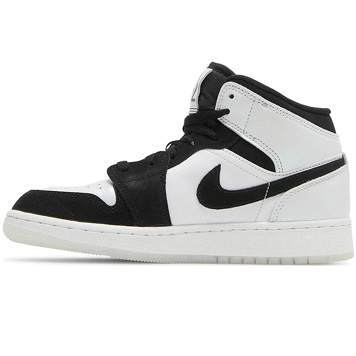 The Nike Air Jordan 1 Mid SE 'Diamond' is a premium sneaker that is designed for the sneakerheads and fans of the Air Jordan line. It features a unique combination of materials and colors that make it stand out from the rest of the Jordan collection. The upper is made from a mix of white and black leather, with metallic silver accents, and a diamond-shaped logo on the tongue. The outsole is made from rubber, which offers traction and durability, making the shoe suitable for both casual wear and athletic activities. The Nike Air Jordan 1 Mid SE 'Diamond' is a must-have for anyone looking for a stylish and comfortable sneaker that is also functional and versatile.