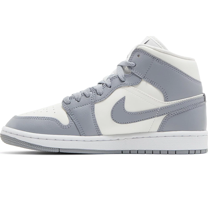 The Nike Air Jordan 1 Mid 'Stealth' is a sleek and stylish shoe that boasts a minimalist, all-grey design with white accents. This shoe features a premium leather upper that provides both durability and comfort, while the white wings logo embossed on the ankle adds a touch of classic style. The shoe is designed with a grey sole that provides excellent traction and stability, making it perfect for everyday wear. Whether you're hitting the streets or the basketball court, the Nike Air Jordan 1 Mid 'Stealth' is a versatile shoe that will elevate any outfit.