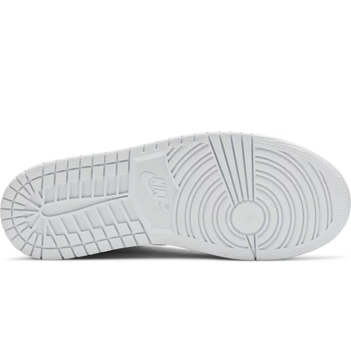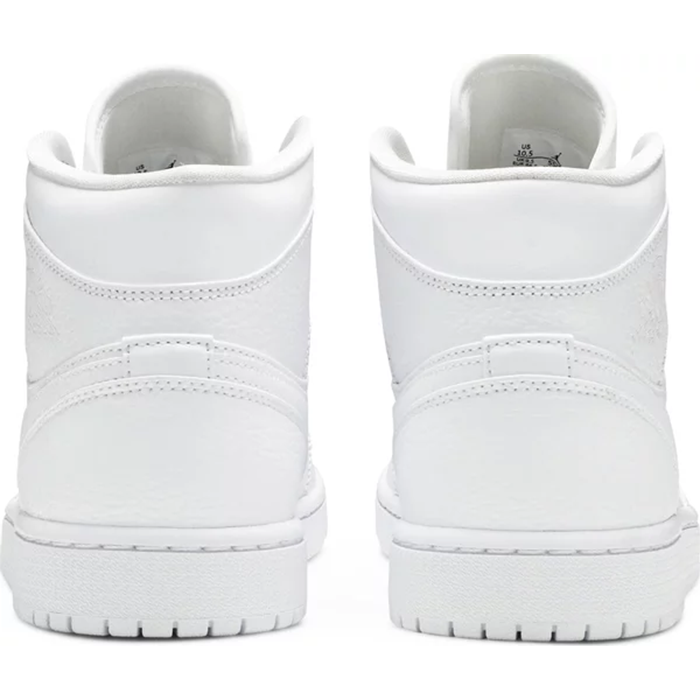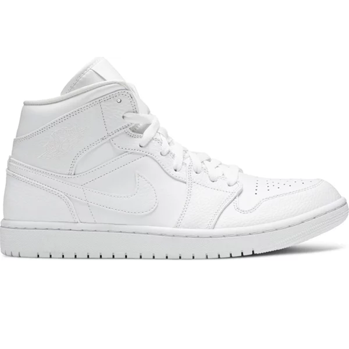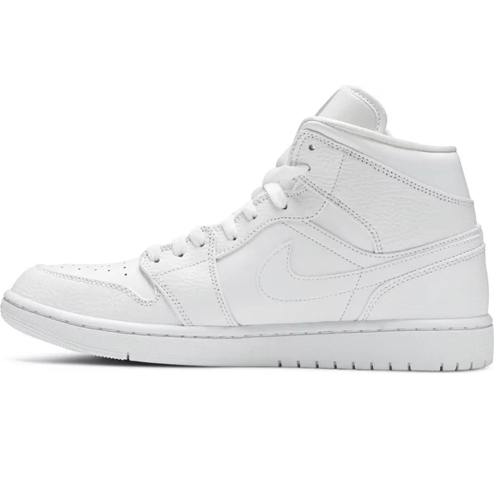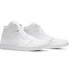 The Nike Air Jordan 1 Retro Mid 'Triple White' is a stylish and comfortable sneaker that combines classic design with modern innovation. This shoe features a high-top silhouette with a clean and simple white leather upper. The midsole is made with Nike's signature Air cushioning technology, providing superior comfort and support for all-day wear.
