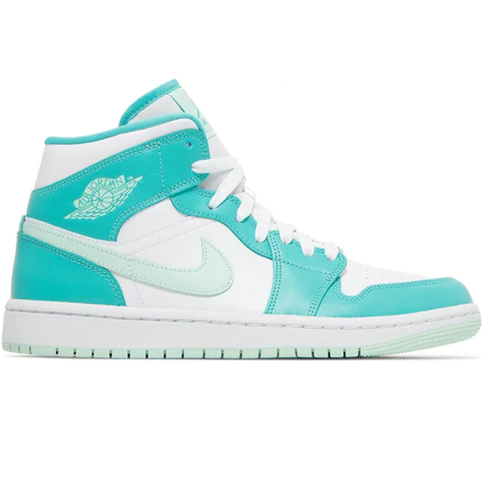 The Nike Air Jordan 1 Mid 'Washed Teal' is a stylish and unique sneaker that offers a perfect blend of comfort and style. It features a washed teal leather upper that exudes a vintage vibe while maintaining a contemporary look. The iconic Air-Sole unit in the heel provides lightweight cushioning for all-day comfort, while the rubber outsole delivers excellent traction on various surfaces. The shoe also features the classic Air Jordan wings logo on the side, along with the Nike Swoosh logo on the midfoot. With its eye-catching design and top-notch quality, the Nike Air Jordan 1 Mid 'Washed Teal' is an excellent choice for sneaker enthusiasts and fashion-forward individuals alike.