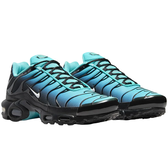 Introducing the Nike Air Max Plus TN 'Aqua Fade.' Stylish and high-performance, these sneakers feature a captivating black & aqua colorway. With premium materials, comfortable fit, and Air Max cushioning, they deliver unrivaled style and comfort. Elevate your athletic game with the Nike Air Max Plus TN 'Aqua Fade.'