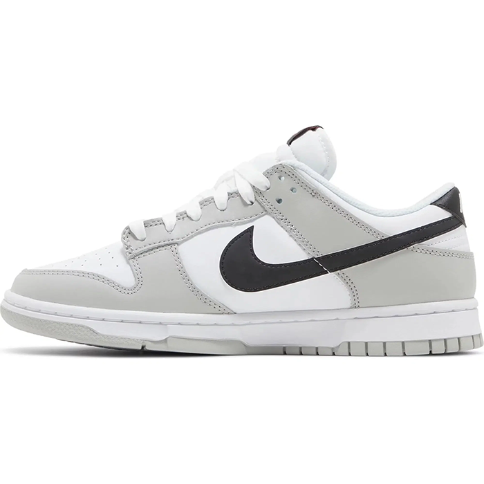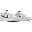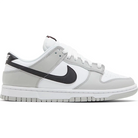 The Nike Dunk Low SE 'Grey Lottery' is a stunning pair of sneakers that will elevate your style game. The shoe features a combination of grey and white leather with black accents, making it a versatile option that will match any outfit. However, what sets this shoe apart is the unique black swoosh that can be scratched off like a scratchy to reveal a red swoosh with white graphics of jewels and money symbols. This feature adds a fun and interactive element to the shoe, making it a must-have for sneaker enthusiasts. The package also includes a special Nike coin that can be used to scratch off the swoosh, making the unboxing experience even more exciting. The Nike Dunk Low SE 'Grey Lottery' is not just a shoe, it's a statement piece that will turn heads and spark conversations.