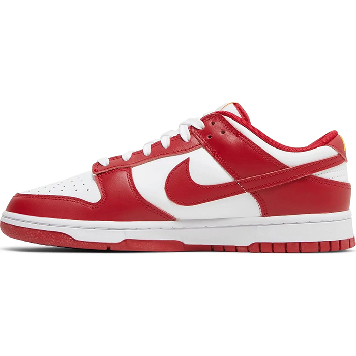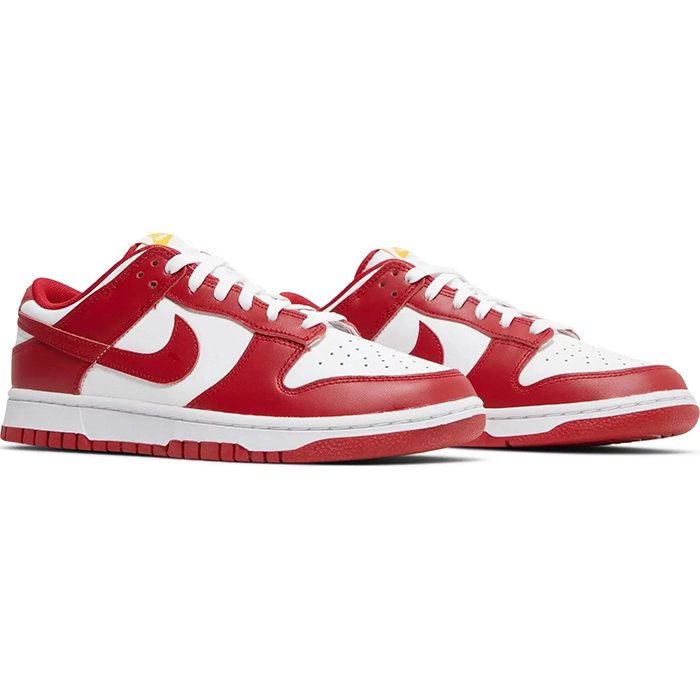 The Nike Dunk Low 'Gym Red' is a stunning addition to the Dunk Low line. This sneaker boasts an all-red leather upper with white accents, creating a bold and stylish look. The embroidered Nike logo on the heel in yellow adds a pop of color and a touch of uniqueness to the design. The use of all leather material provides durability and comfort, ensuring a long-lasting wear. Whether you're dressing up or down, the Nike Dunk Low 'Gym Red' is sure to make a statement and become a staple in your sneaker collection.