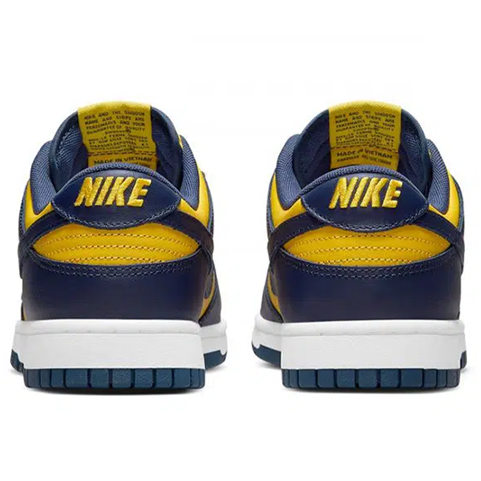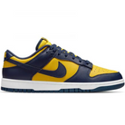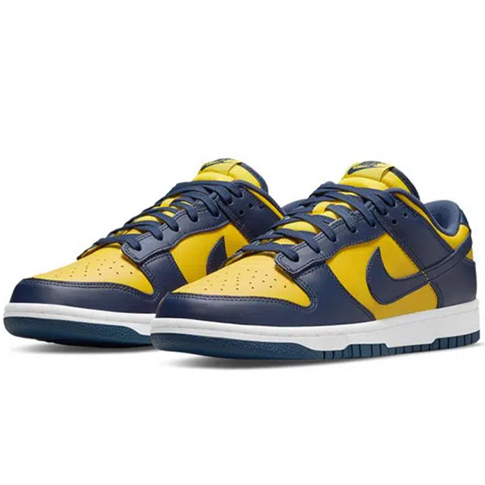 The Nike Dunk Low 'Michigan' is a trendy and attention-grabbing sneaker with a classic low-cut design. It boasts a striking combination of maize and blue colors that pay homage to the University of Michigan, a prestigious American college with a storied sports legacy. The upper is crafted from high-quality leather, while the outsole is made of durable rubber, providing exceptional traction and resilience. These shoes are ideal for daily wear or playing basketball due to their sturdy build and robust grip. Overall, the Nike Dunk Low 'Michigan' is a must-have for sneaker enthusiasts or University of Michigan supporters seeking to add a touch of style and nostalgia to their wardrobe.