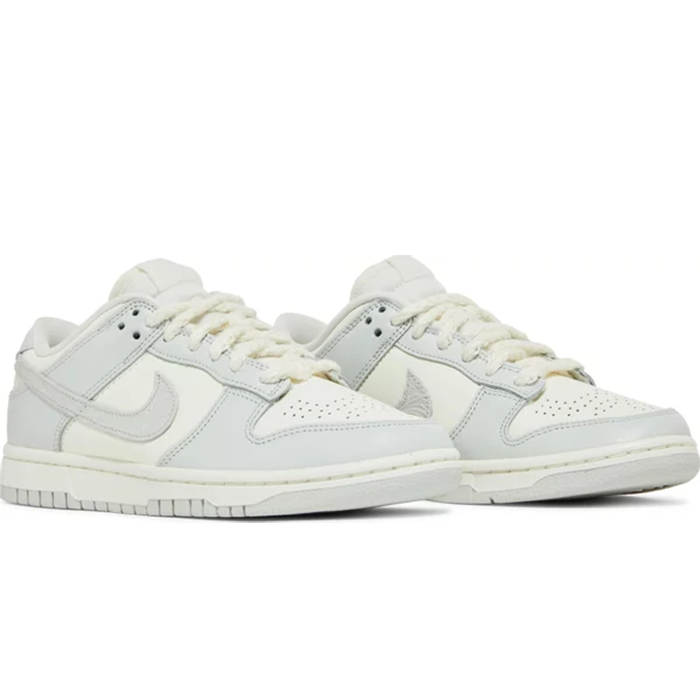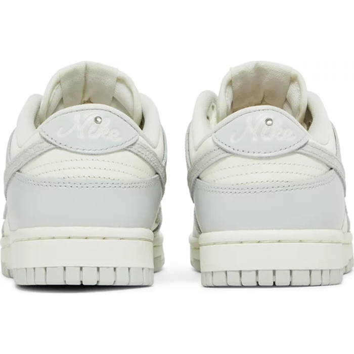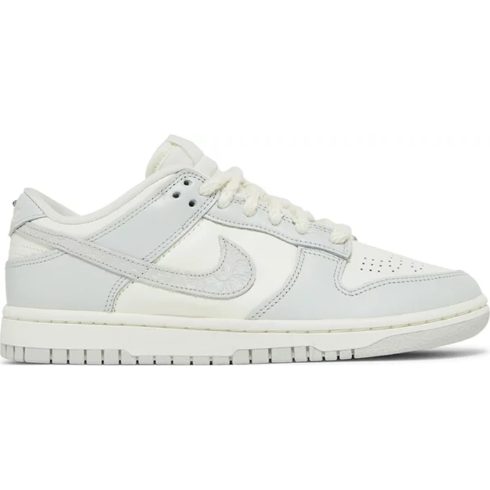 The Nike Women’s Dunk Low ‘Needlework’ showcases neutral tones and unique details inspired by the fashion of the American West. Braided rope laces secure the all-leather upper, featuring a subtle off-white base with light grey overlays at the forefoot and heel. An intricately embossed pattern enlivens the signature Swoosh, while a single rhinestone is embedded in the heel tab, marked with Nike branding in a decorative script. Underpinning the low-top is a traditional cupsole that pairs Sail-colored sidewalls with a durable rubber outsole in Photon Dust.