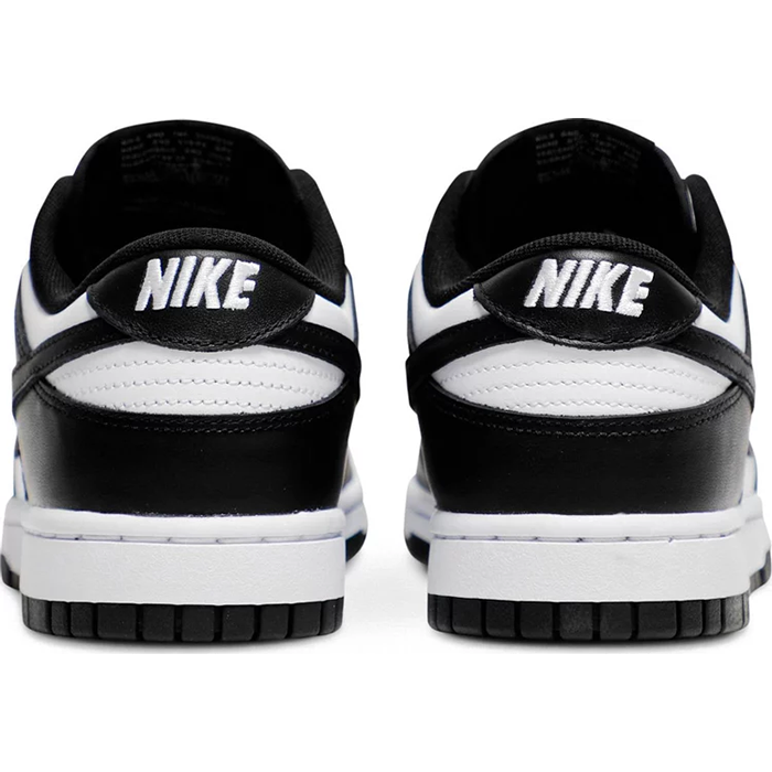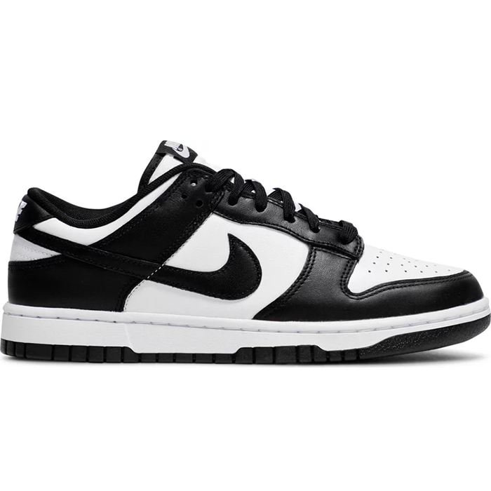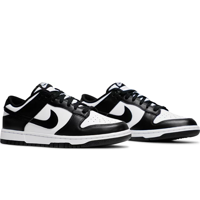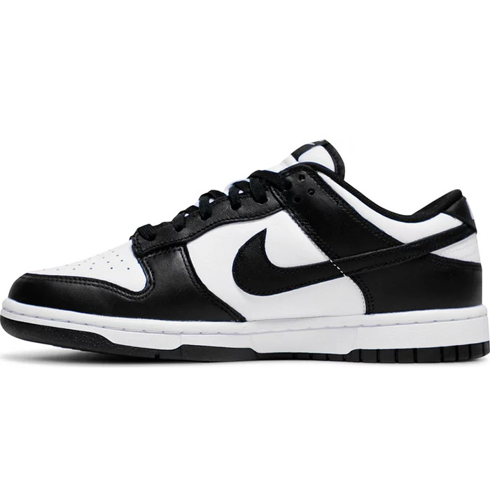 The Nike Dunk Low 'Panda' is a stylish and sleek sneaker that is sure to turn heads. The shoe features a striking black and white colorway, with the majority of the upper covered in a clean, white leather, while black leather is used for the overlays and detailing. The iconic Nike Swoosh is also rendered in black, adding a bold contrast to the design. The silhouette of the shoe is classic and timeless, with a low-cut profile that offers a comfortable and flexible fit. The Nike Dunk Low 'Panda' is perfect for sneaker enthusiasts who value both style and comfort in their footwear.