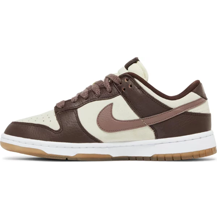 The Nike Women’s Dunk Low ‘Plum Eclipse’ combines a simplistic two-tone color scheme with a refreshed build. A suede upper in Coconut Milk is bolstered with contrasting tumbled leather overlays in Plum Eclipse. The earthy colors up top are offset by a crisp white rubber midsole, built with stitched sidewall construction and an interior foam wedge for lightweight cushioning. Underfoot, the semi-translucent gum rubber outsole features a traction pattern originally designed for pivoting on the hardwood.