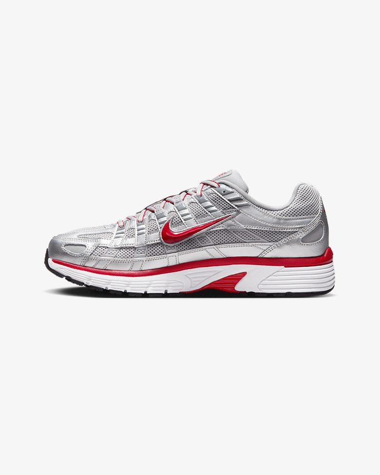 Introducing Nike's P-6000 ‘Metallic Silver Gym Red', the ultimate lightweight everyday shoe. With its sleek design and comfortable fit, you'll feel like you're flying on your feet. Perfect for any adventure, these shoes will have you feeling light and fast. Grab a pair and take off!