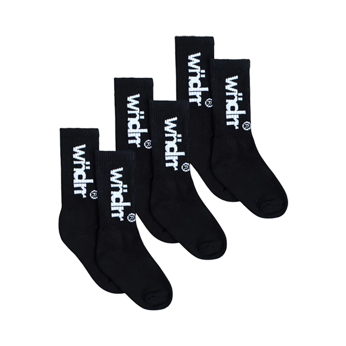 Step up your sock game with the WNDRR Offcut Socks in classic black. Featuring the WNDRR logo, these socks are both stylish and comfortable. Perfect for any occasion, these socks add a touch of personality to any outfit.