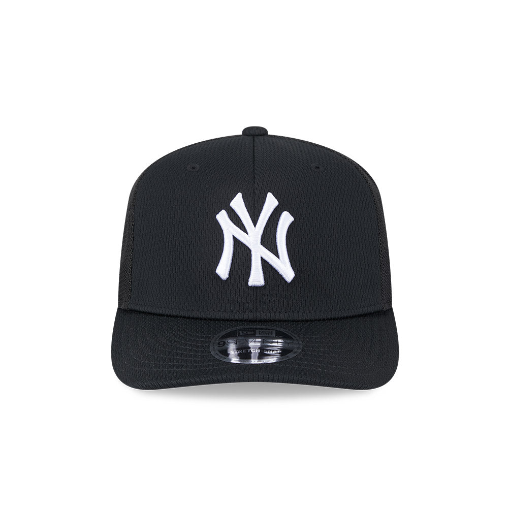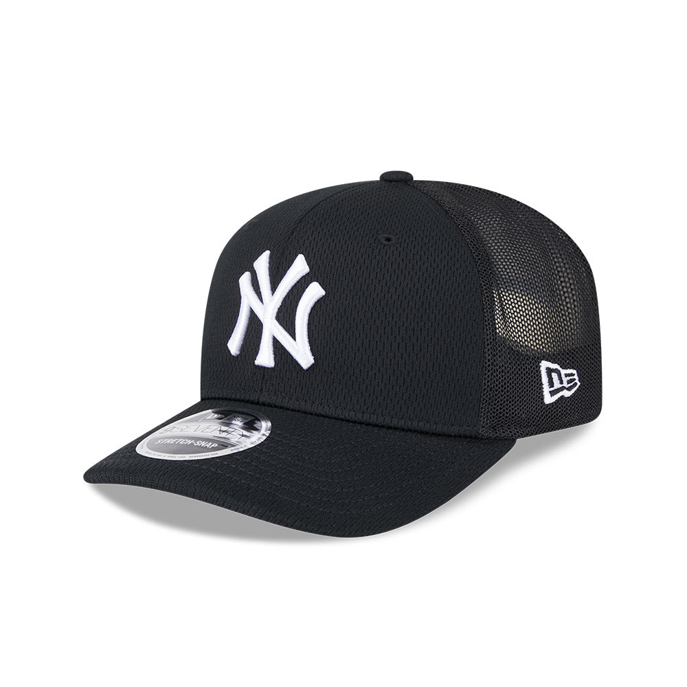 Introducing the New Era New York Yankees 9Seventy Trucker Stretch-Snap cap in sleek 'Black'. The perfect accessory for any Yankees fan, this cap features a snug and flexible fit for maximum comfort and style. Show your team spirit and stand out from the crowd with this must-have accessory!
