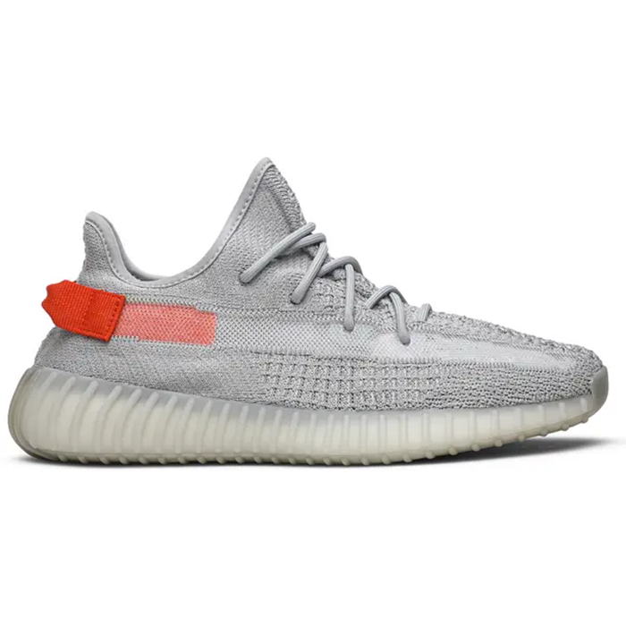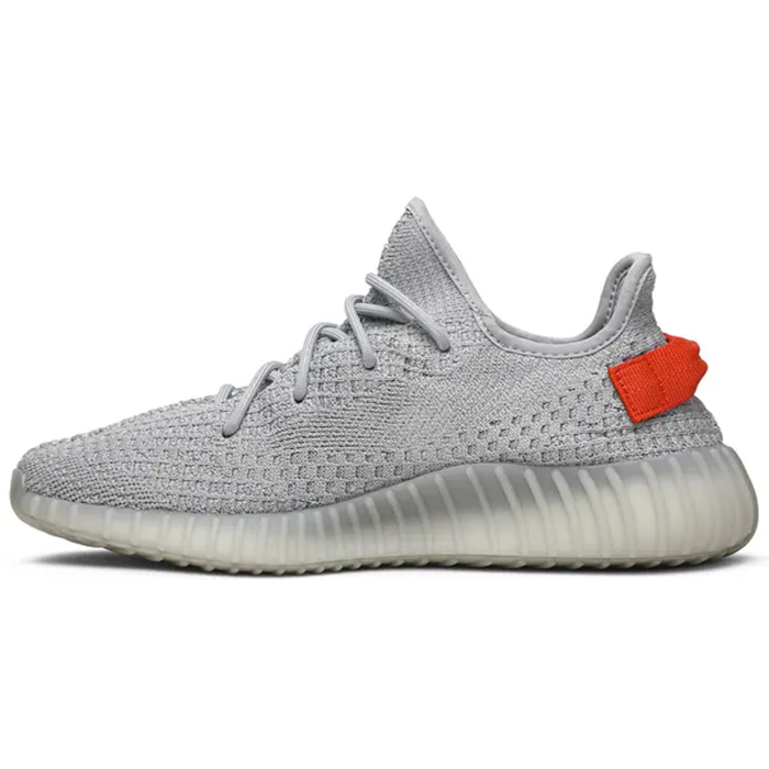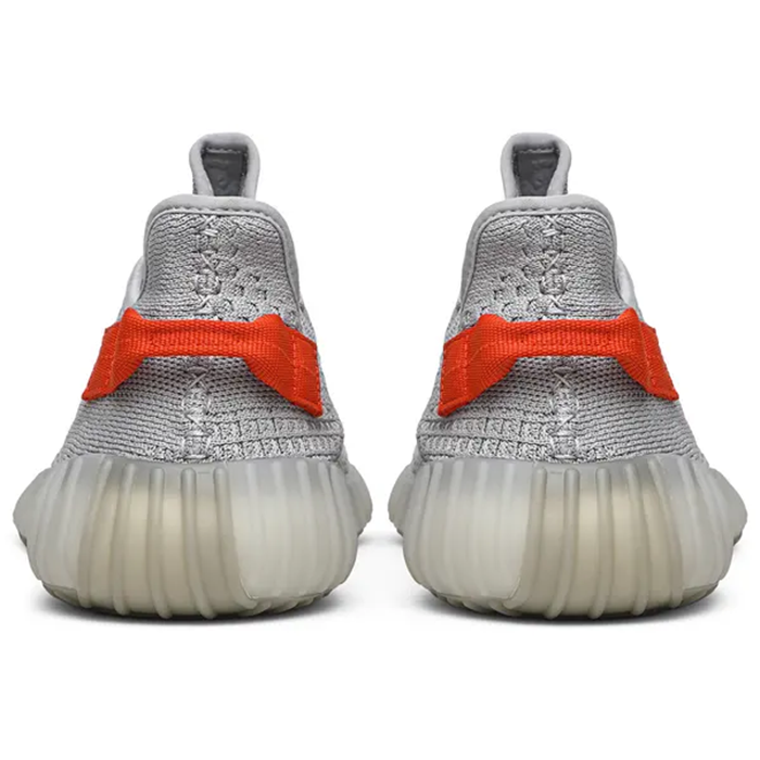 The Yeezy Boost 350 V2 'Tail Light' showcases a pop of bright orange at the stitched textile heel tab, along with a less concentrated shade of the same hue on the signature post-dyed monofilament side stripe. The rest of the upper is constructed from light grey Primeknit in a minimalist one-piece build, complete with a distinctive center stitch running down the vamp. A semi-translucent rubber midsole houses adidas Boost cushioning for a smooth ride. The 'Tail Light' colorway is only available in Europe, Russia and Ukraine.