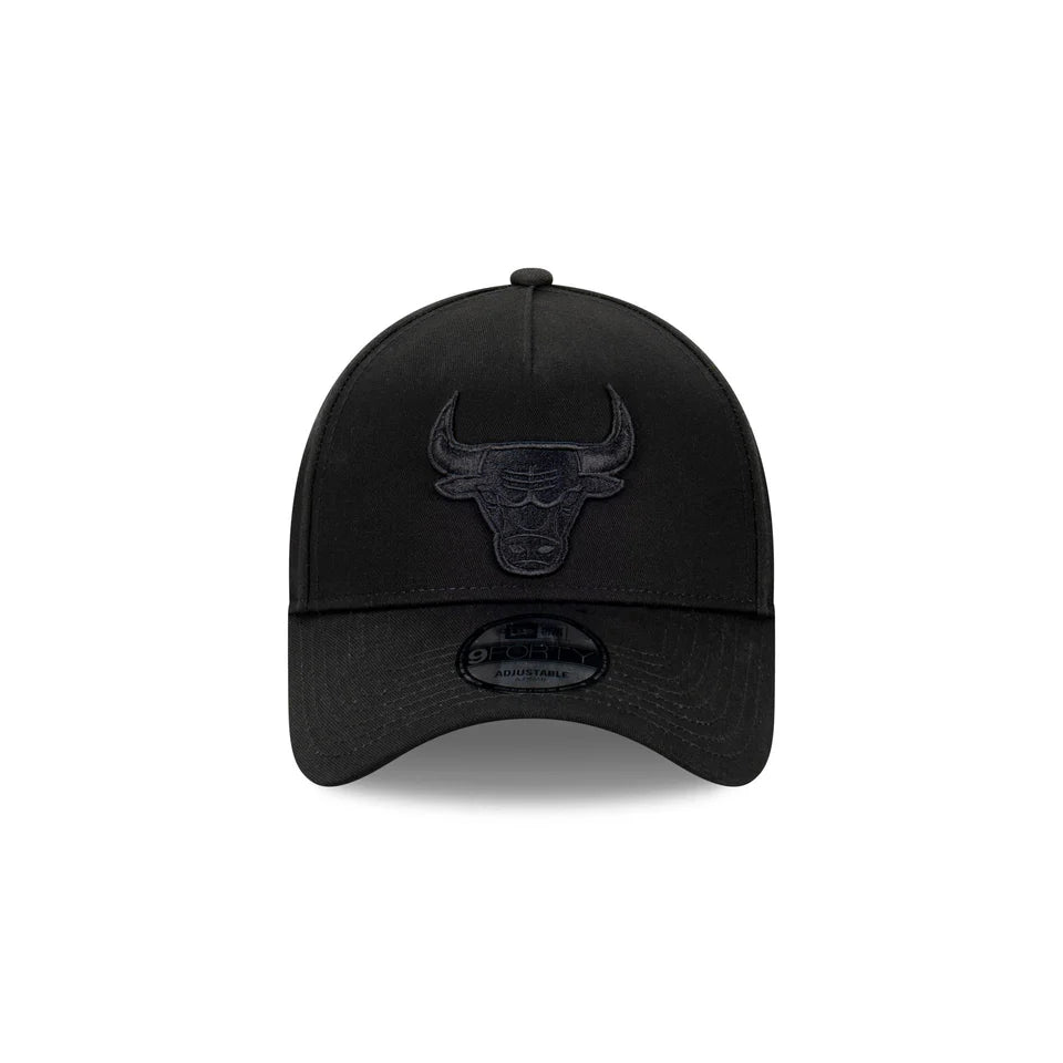 The Chicago Bulls NBA Essentials Black on Black 9FORTY A-Frame features an embroidered tonal Bulls logo at the front panels with a tonal NE Flag on the left side.