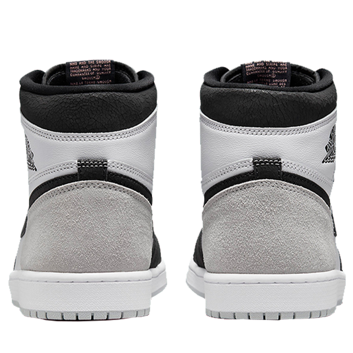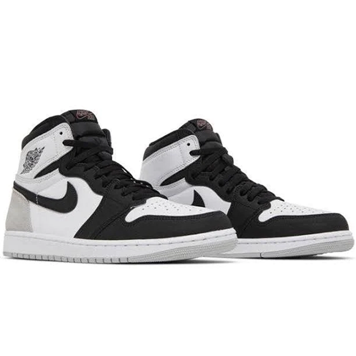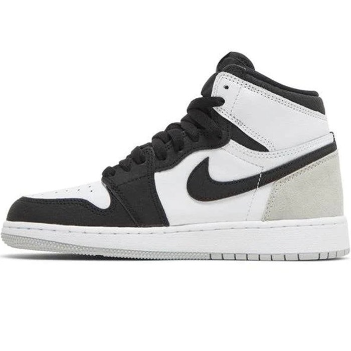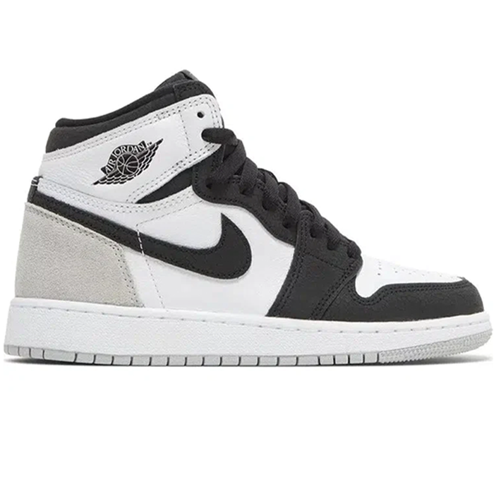 The Nike Air Jordan 1 High 'Stage Haze' is a striking and stylish sneaker that is sure to turn heads. Featuring a unique colorway of black, white, and grey, the shoe has a bold and edgy look that is perfect for those who want to make a statement. The upper is made of a combination of leather and suede, providing both durability and a premium feel. The iconic Air Jordan logo is prominently displayed on the side of the shoe, while the Nike swoosh is featured on the toe box and tongue. The shoe also includes Nike's Air cushioning technology for maximum comfort and support, making it a great option for both casual wear and athletic activities. Overall, the Nike Air Jordan 1 High 'Stage Haze' is a must-have sneaker for any fashion-forward sneaker enthusiast.
